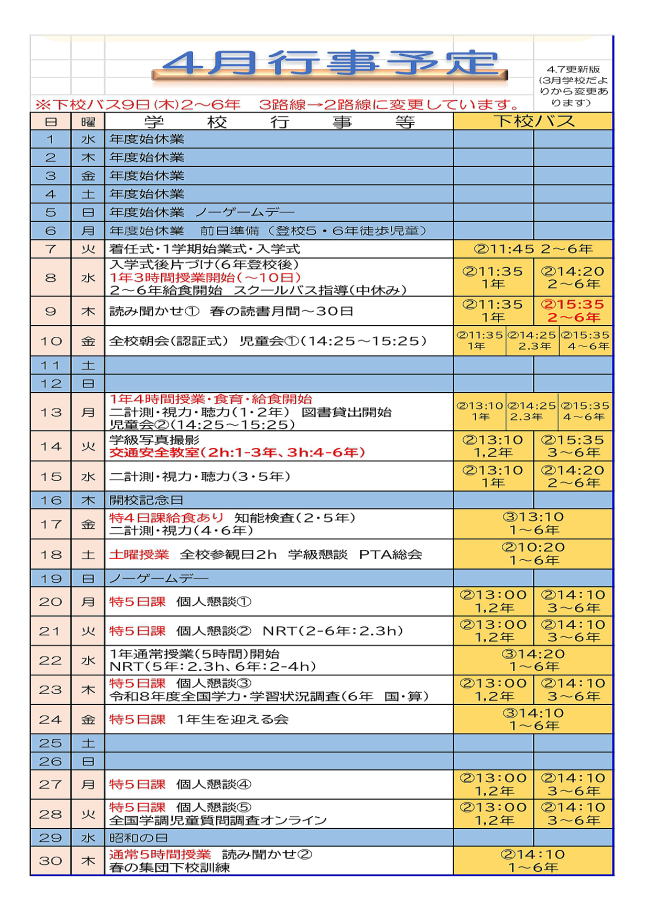※4月行事予定(4月7日現在)追加変更がありましたら随時更新いたします