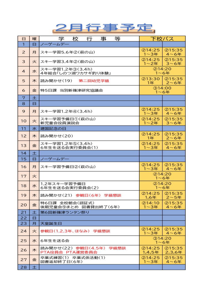 ※2月行事予定(1月30日現在)追加変更がありましたら随時更新いたします.