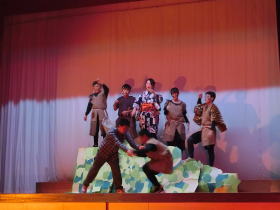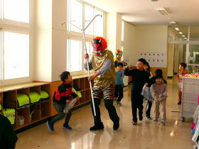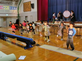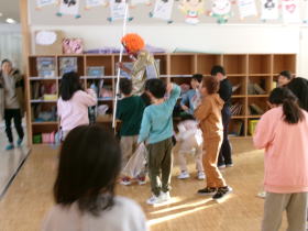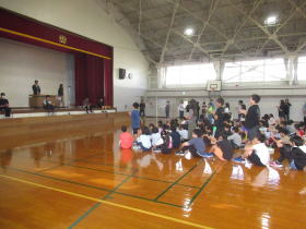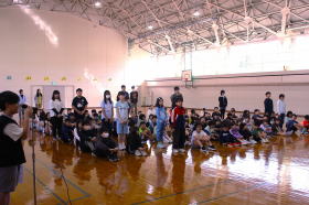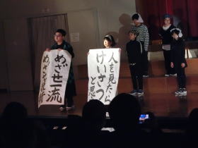 芸術鑑賞会が体育館で行われました。劇団風の子の演目「めっきらもっきらどおんどん」を全校児童で鑑賞しました。体育館に設置された特設ステージで行われた迫力ある演技に、目を輝かせて見入っていました。プロの演技を間近で観ることができて、子どもたちの心に残る貴重な経験になったと思います。