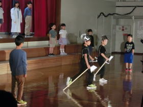 いよいよ今週25日(土)にせまった学芸会一般公開日に向けて、一回目の本番となった児童公開日が行われました。まずはこの日に向けて各学年演奏や演技を仕上げるために、日々練習に取り組んできました。本番と同じ流れで、4年生以上の各係の動きも確認しながら、どの学年も立派な発表ができました。保護者、地域の皆様に喜んでもらえる最高の発表になることを期待してます。
