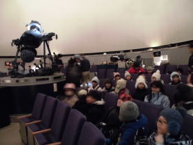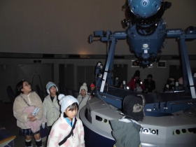 4年生理科「冬の星」の学習で、岩見沢郷土科学館にあるプラネタリム見学に行きました。夏には、新篠津村にある天文台を見学し、夏の星の動きなどを学習しました。そして、今回はプラネタリムで広がる星空を見て、星に興味をもつきっかけになったと思います。