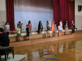 第46回新しのつ青空まつりは、毎年8月に行われる新篠津村最大のイベントです。新篠津小学校としてもイベントを盛り上げるために、毎年出演しています。今年は各ブロック(低・中・高)による音楽発表です。低ブロックは「合唱 子犬のビンゴ」、中ブロックは「合唱 プパポ」、高ブロックは「リコーダー演奏 星笛」を、緊張しながら一生懸命発表しました。