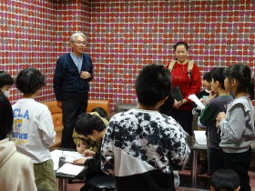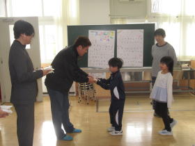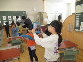 ふれあい塾のみなさんが来てくれて、2年生に昔のあそび、おもちゃ作りを教えてくれました。やさしくお手伝いしてもらいながら、わりばしてっぽうを作ってみんなで的あてに挑戦。楽しいひと時でした。
