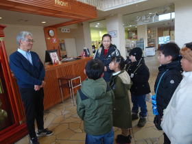 3年生の総合的な学習の時間で「温泉のひみつをさぐろう」のテーマで、探求学習をすすめています。この日は、実際の施設を見学してどんな魅力があるかを探りました。見学の後は、3年生みんなで温泉に入りました。