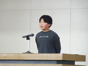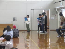 2学期終業式では、1年3年5年から代表で1名ずつステージで作文発表をしました。校長先生からは、「健康に過ごすこと」「自分を成長させること」「家族で助け合うこと」の3点についてお話をしました。いよいよ冬休み。楽しく過ごして3学期も元気に会いしましょう。