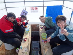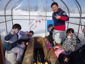 毎年4年生が総合で取り組んでいる「しのつ湖探検隊」の学習では、春のワカサギ稚魚放流「孵化盆おろし」から始まり、年間通してしのつ湖について探求活動をしてきました。いよいよ楽しみにしていたワカサギ釣り体験です。今年は天候に恵まれて、最高のコンディションでした。