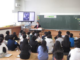 新篠津村の社会福祉協議会であり、人権養護委員でもある戸賀澤さんを特別講師に迎えて、全学年で人権教室が行われました。1年生は学年閉鎖となったためできませんでしたが、電子黒板を利用して読み聞かせや映像などを通して、人権とはどんなことかをじっくり考える貴重な時間となりました。