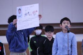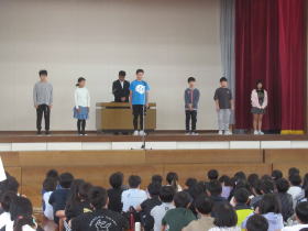 後期児童会の書記局メンバーを決める役員選挙が行われました。6年会長候補から4年書記候補まで一人一人演説し、堂々とした態度で自分の主張を述べていました。結果はともあれ、立候補してみんなの前で自分の考えを話すこと自体が、貴重な経験になったと思います。みんなで学校全体を盛り上げていきましょう。
