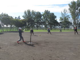 9月から続いている、新篠津中の先生による乗り入れ授業が行われています。この日は体育で、ティーボールの授業でした。6年生は野球少年団の児童が多いですが、クラスみんなで楽しめるようルールを工夫して行う試合は、大いに盛り上がりました。