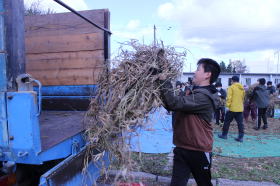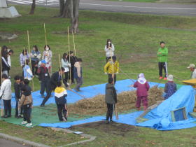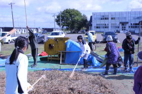 6月に畑にまいた小豆がしっかり育ちました。9月に刈り取りをし、前庭で干していた小豆を脱穀する体験をしました。ふれあい塾の皆様のサポートを受けて、手作業で行いました。今回収穫した小豆は、12月の餅つきのときにあんこにして一緒に食べる予定です。