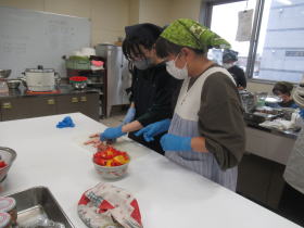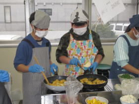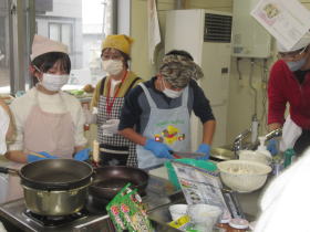 新篠津村の食育講座の一環で、6年生が保護者と一緒に「料理教室」を実施しています。保健センターの調理室で「ハムたまおにぎり、キャベツとツナのいそべ和え、鶏むね肉のカレー炒め、みそ汁」を作りました。親子協力して楽しい時間を過ごせたと思います。