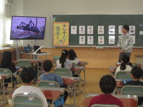 新篠津村で土木事業を行っている砂子組の方々が来校されて特設授業「土木のおしごと」を2年生にしていただきました。スライドでわかりやすく土木にかかわる仕事の内容を説明してもらい、その後ipadを使ってAR技術の体験をしました。QRコードで読み取った動物や乗り物が画面上で自由に動く様子を見てみんなびっくり!楽しい授業になりました。