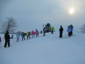 冬休み明けは、スキー学習が始まります。3年生以上は岩見沢の萩の山スキー場に来週から行きます。その前に、学校の築山で体慣らしのための練習です。19日は5,6年。20日は4年が行ないました。21日は3年生、22日からは1,2年生が滑ります。