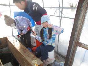 4年生社会科で北海道の開拓の様子を学びました。昔の暮らしを体験する活動として、ふれあい塾のみなさんに全面協力してもらい、羽釜でお米を炊いおにぎりを食べる体験をしました。お米はもちろん新篠津産の新米です。寒い中でしたが、晴天になって少し寒さも緩みました。羽釜で炊いたお米は格別だったようです。