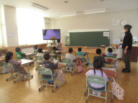 今日は、1年生を迎える会がありました。1年生は、緊張しながらも、大きな声で自己紹介をしました。2年生は、1年生に、新篠津小学校の校歌と、自分たちが育てたひまわりの種をプレゼントしました。3年生は、休み時間の過ごし方や廊下の歩き方などを教えてくれました。。4・5年生は、新篠津小学校の先生方を、楽しいクイズを交えて紹介していました。6年生は、小学校ではどんな楽しい行事があるかをクイズで教えてくれました。